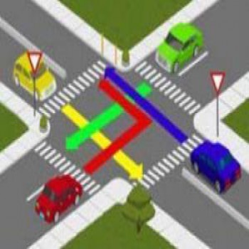 در تقاطع روبه رو حق تقدم وسایل نقلیه را با ذکر رنگ معین نمایید