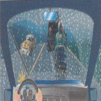 به دنبال یک کامیون بر روی یک جاده خیس حرکت می کنید،پاشیدن آب باران دیدن را مختل می کند، چکار باید بکنید؟